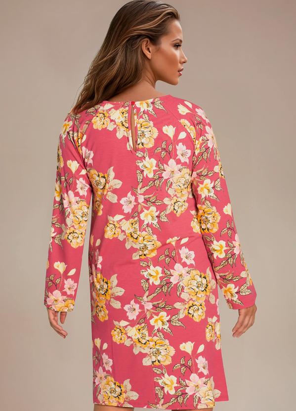 bonprix - Vestido Manga Ampla Floral Vermelho