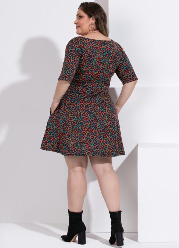 Quintess - Vestido Midi Onça com Franzidos no Busto