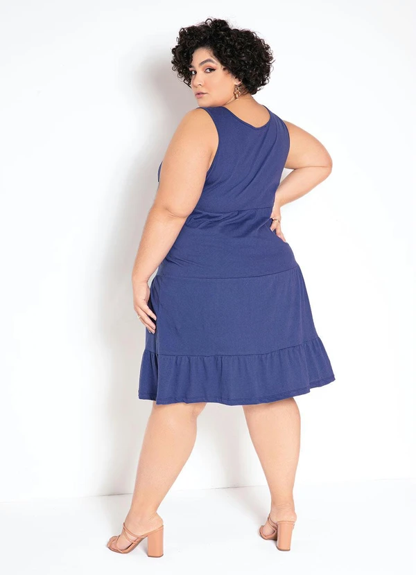 Vestido regata com babados franzidos, com peitilho funcional e botões na cor da peça. Modelo confortável, com modelagem soltinha.