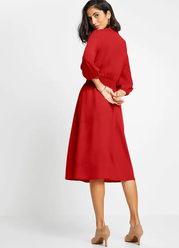 bonprix - Vestido Vermelho em Viscose Plana